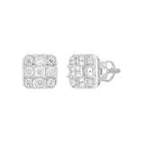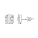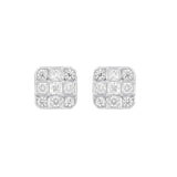 LADIES EARRINGS 1CT ROUND/PRINCESS DIAMOND 14K WHITE GOLD
